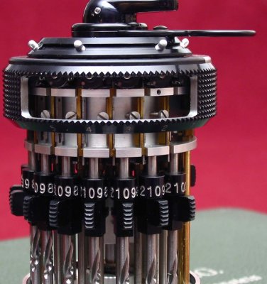 Open frame "demo" Curta Type I from JackChristensen. This machine was in a Type I demonstration kit that presented to prospective buyers the high quality workmanship inside the Curta. This particular Curta was serial number 8651.